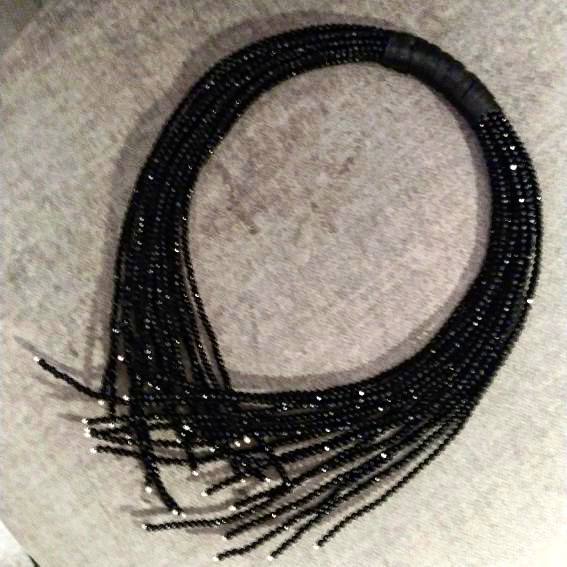 Бусины брала черные под черную шпинель 3мм. На 2 струны уходит 3нити бусин.