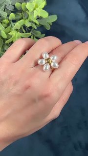 Кольцо с цветком из бусин