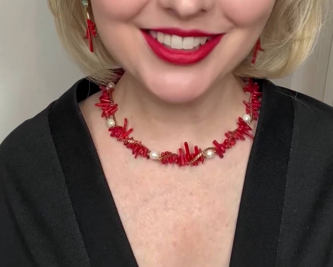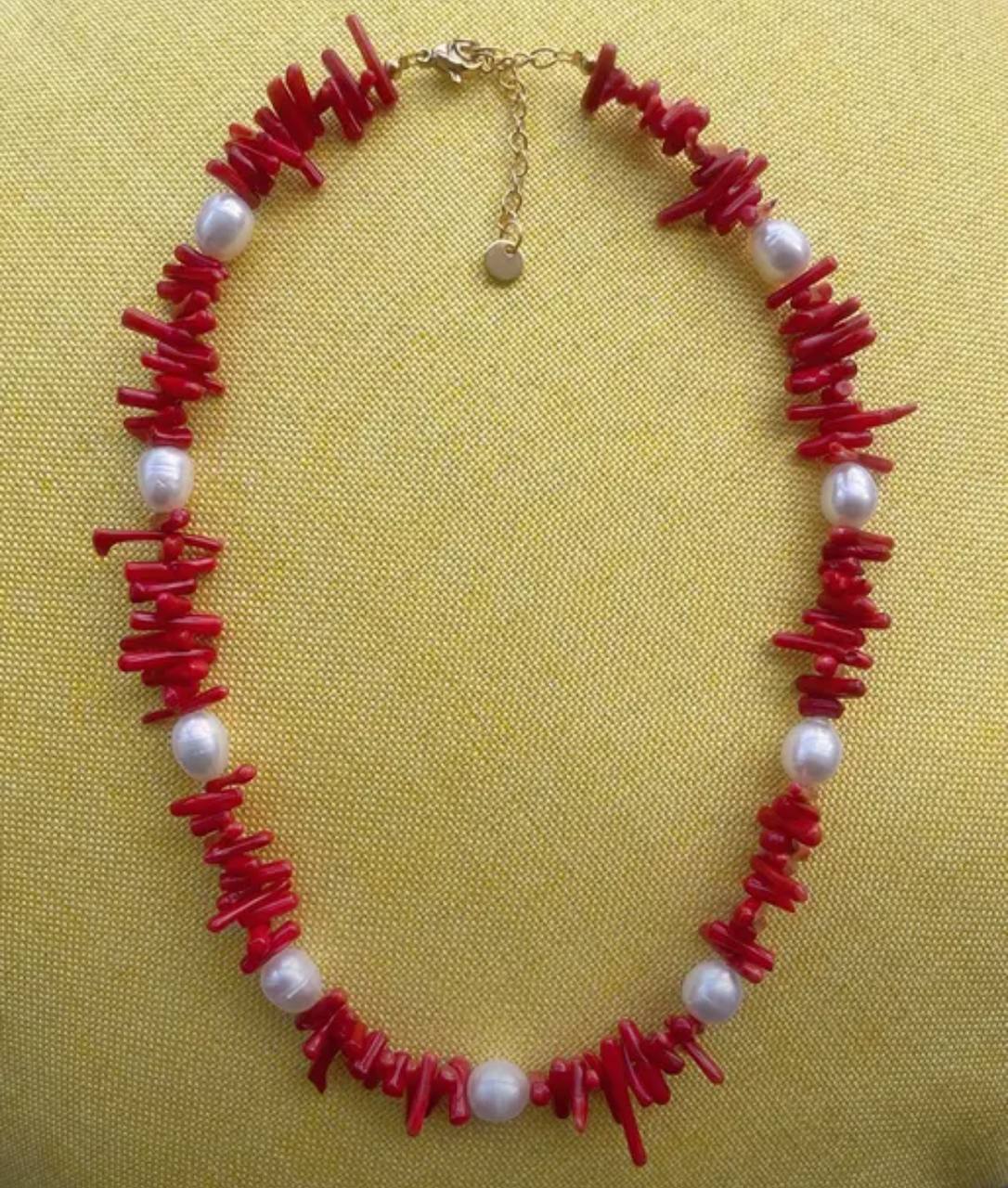Коралловое колье с жемчугом